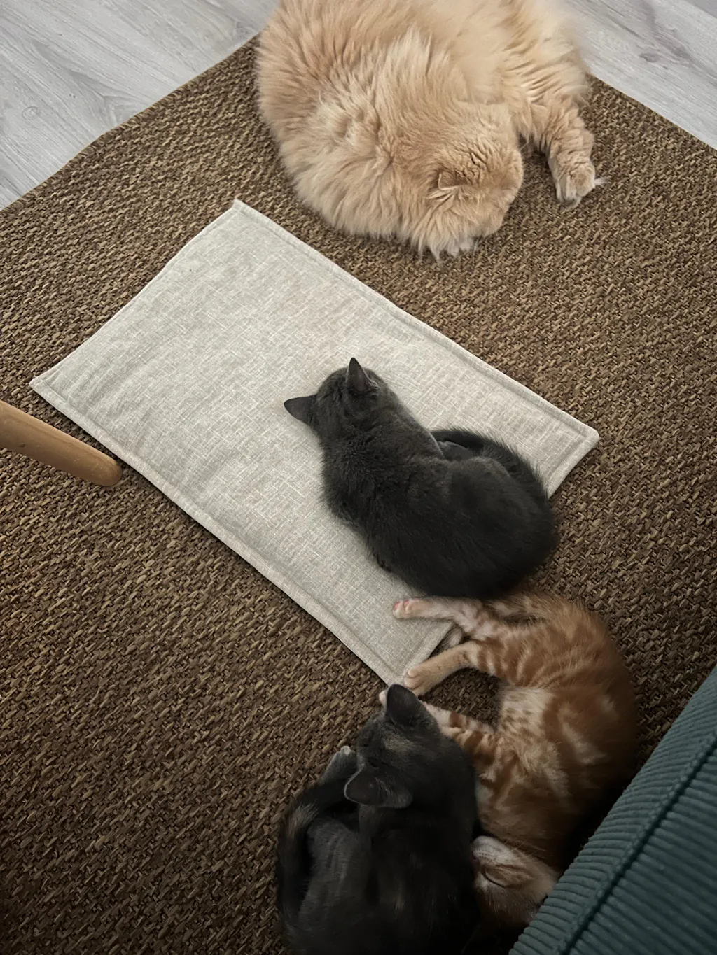 Merci Fleur pour l’indication du pain de glace idéal parce que c’est absolument parfait ! Le tapis reste frais plusieurs heures tout en étant confortable, il a sauvé les longues journées de canicule avec les chatons !!