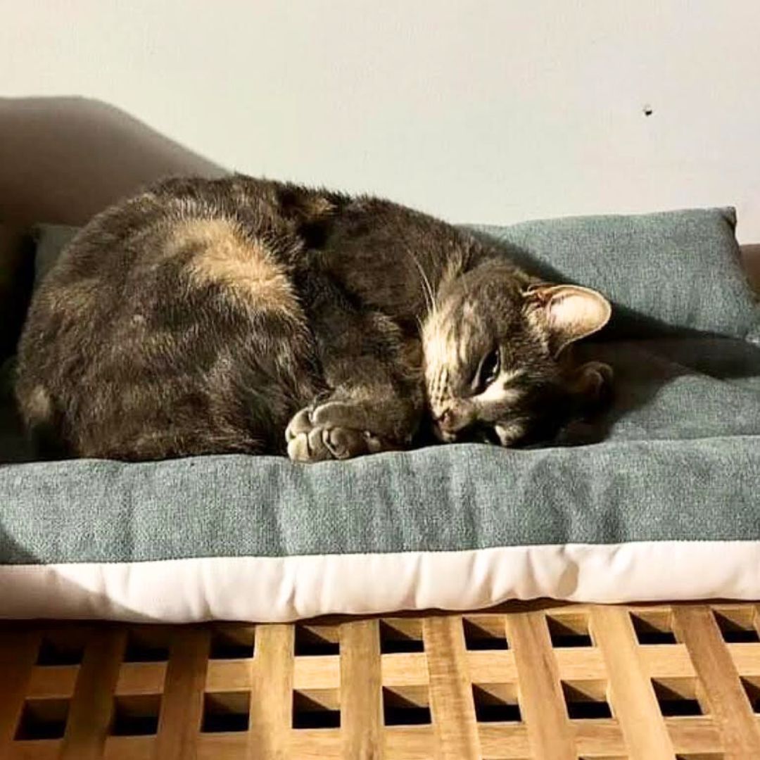 Il en a fallut des mois mais les flops sont enfin là ! Installé à son coin dodo sur tapis préféré elle s’y pose tout le temps 🫶