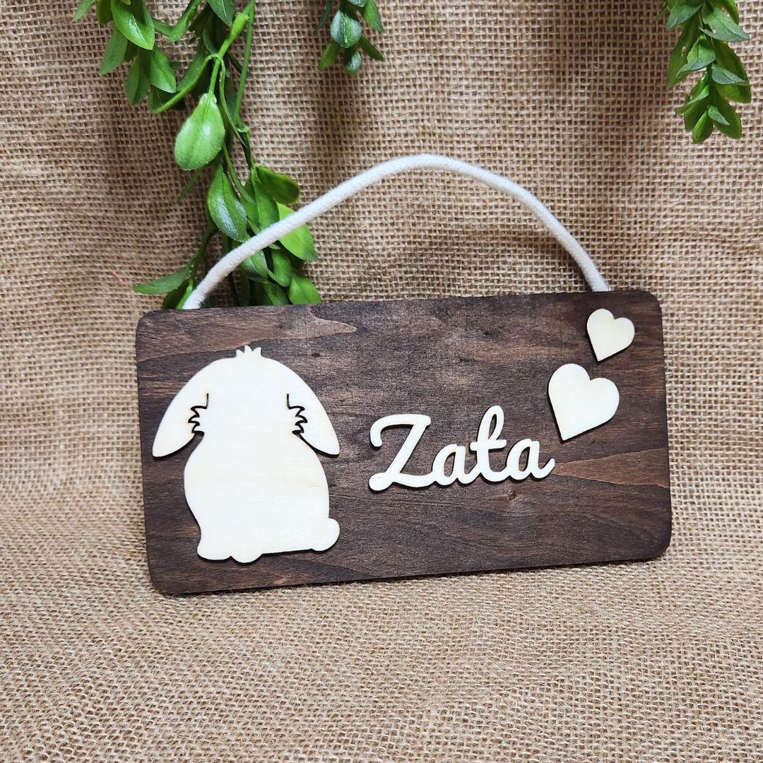 Pancarte rectangulaire SOLO (LAPIN) - Bois foncé