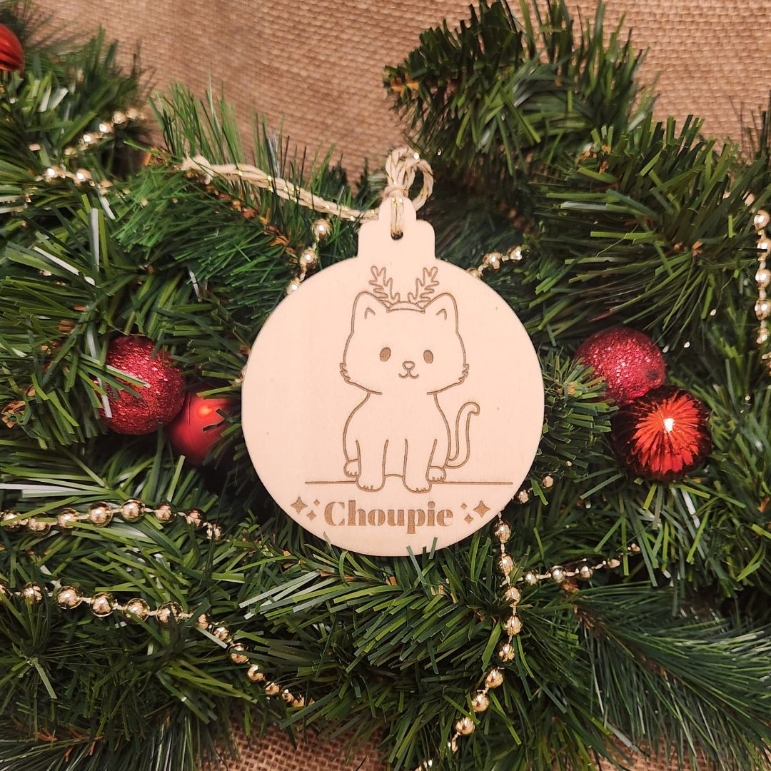 Suspension en bois gravure personnalisée de Noël - CHAT