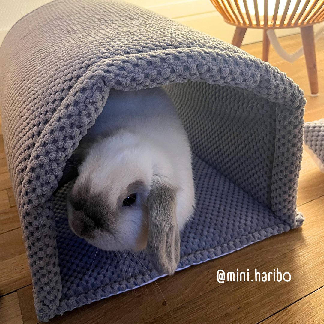 Parce qu’un chat qui fait sa sieste dans le fonds de la penderie ou un lapin qui creuse sous le canapé… ça sent le besoin de refuge et de tranquillité, pas vrai ? Avec ce tunnel imperméable, vous offrez à votre compagnon un abri confortable, sécurisant et stylé, entièrement fait main par mes soins 🧵✨.